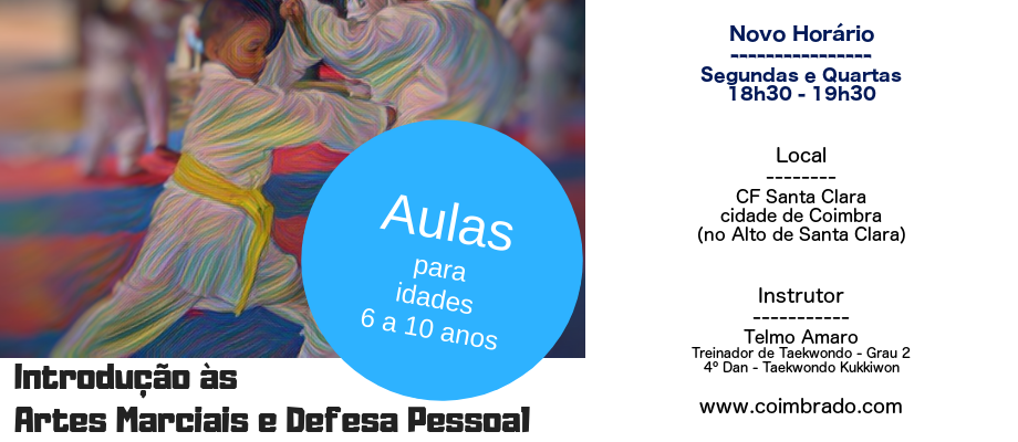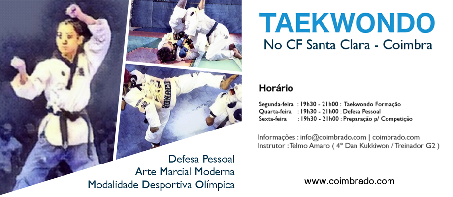 Informa-se que as aulas de Taekwondo para Jovens e Adultos já estão a decorrer no CF Santa Clara em Coimbra, desde 23 de Setembro 2019.